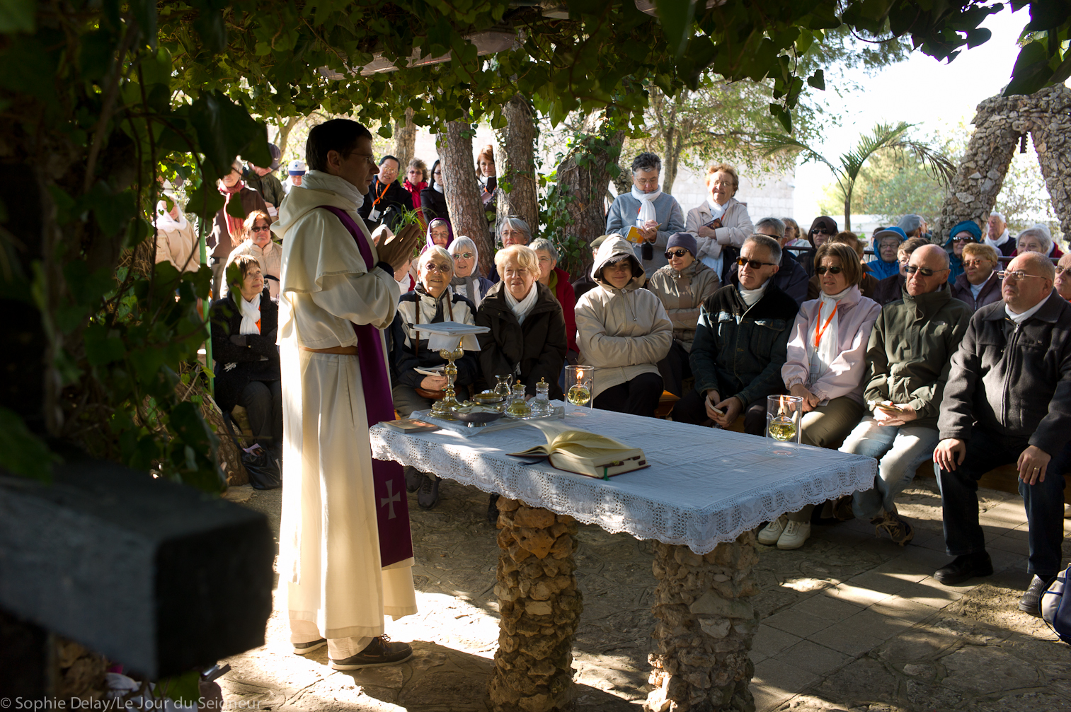 La Murhaqua, messe sous les feuillages, Césarée maritime, Ein Karem, arrivée Bethléem